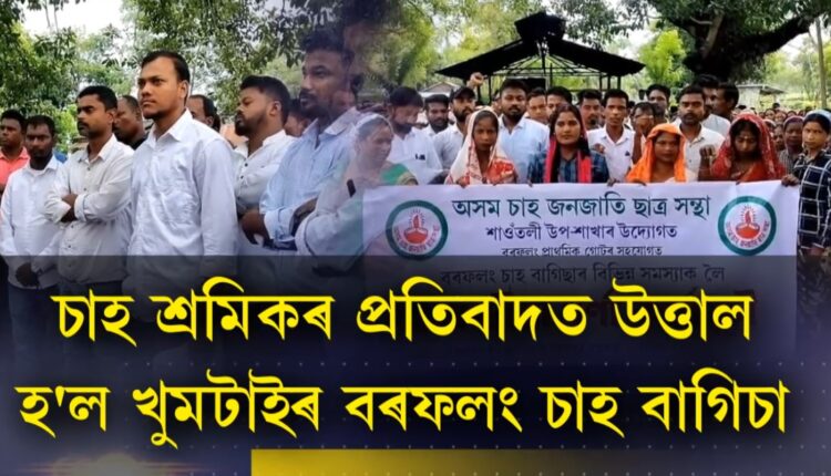 চাহ শ্ৰমিকৰ প্ৰতিবাদত উত্তাল হ’ল খুমটাইৰ বৰফলং চাহ বাগিচা
