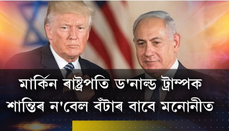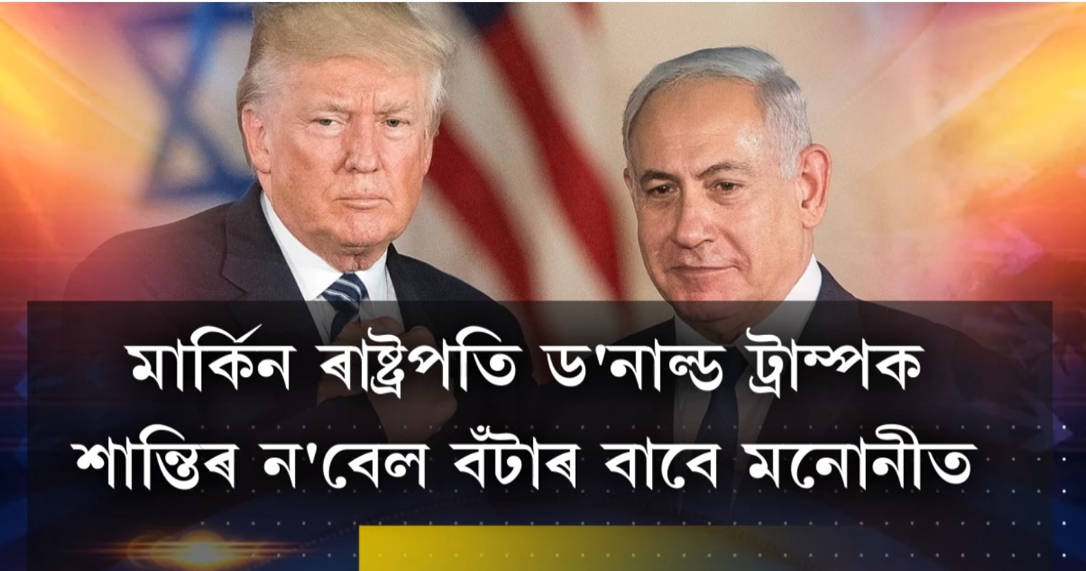 আমেৰিকা যুক্তৰাষ্ট্ৰৰ ৰাষ্ট্ৰপতি ড’নাল্ড ট্ৰাম্পক Deserving আখ্যা দি শান্তিৰ ন’বেল বঁটাৰ বাবে মনোনীত কৰিছে ইজৰাইলৰ ৰাষ্ট্ৰপতি বেঞ্জামিন নেতান্যাহুয়ে । ৰাষ্ট্ৰপতি ড’নাল্ড ট্ৰাম্পৰে হোৱাইট হাউছত নৈশ ভোজ গ্ৰহণ কৰি থকাৰ সময়তেই ইজৰাইলৰ প্ৰধানমন্ত্ৰী বেঞ্জামিন নেতান্যাহুয়ে মনোনয়ন পত্ৰখন ড’নাল্ড ট্ৰাম্পৰ হাতত অৰ্পন কৰে । ট্রাম্পৰ হাতত মনোনয়ন পত্ৰ খন দাখিল কৰি বেঞ্জামিন নেতান্যেহুৱে এই বঁটাৰ বাবে ড’নাল্ড ট্ৰাম্প যোগ্য আৰু এয়া তেওঁৰ প্ৰাপ্য বুলি মন্তব্য কৰে ।