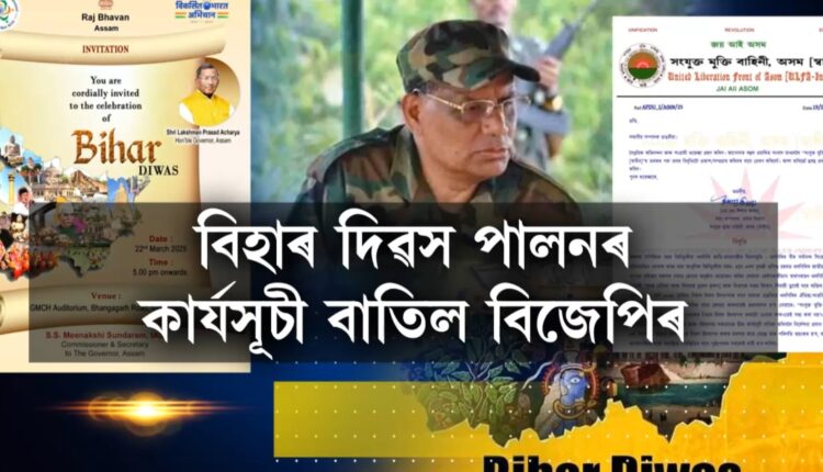 বিহাৰ ৰাজ্য স্থাপনৰ ১১৩ বৰ্ষপূতি উপলক্ষে অহা ২২ মাৰ্চত ৰাজ্যৰ বিভিন্ন প্ৰান্তত একাংশ বিহাৰী সম্প্ৰদায়ৰ লোকে বিহাৰ দিৱসৰ কাৰ্যসূচীৰ আয়োজন কৰিছিল। বিহাৰ ফাউণ্ডেশ্যনে গুৱাহাটীৰ জি এম চি প্ৰেক্ষাগৃহত আয়োজন কৰা কাৰ্যসূচীত অংশ ল’বলৈ আমন্ত্ৰিত কৰিছিল ৰাজ্যপালকে ধৰি বিভিন্ন গন্য-মান্য ব্যক্তিক। কিন্তু অসমত বিহাৰ দিৱস অনুষ্ঠিত কৰাৰ বিৰোধিতা কৰি একাংশ দল-সংগঠনে ইয়াক বাতিল কৰাৰ দাবী তুলিছিল। ইয়াৰ পাছতে আঞ্চলিক দল-সংগঠনৰ প্ৰতিবাদৰ সন্মুখীন হৈ অৱশেষত বিজেপিয়ে অসমৰ তিনিচুকীয়াত ‘বিহাৰ দিৱস’ উদযাপনৰ পৰিকল্পনা বাতিল কৰিছে।